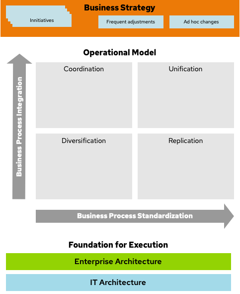 - If we have a model classified as “Coordinated”, it seems right to standardise the IT Business Architecture at the level of business process-, data and information-, and application architecture.